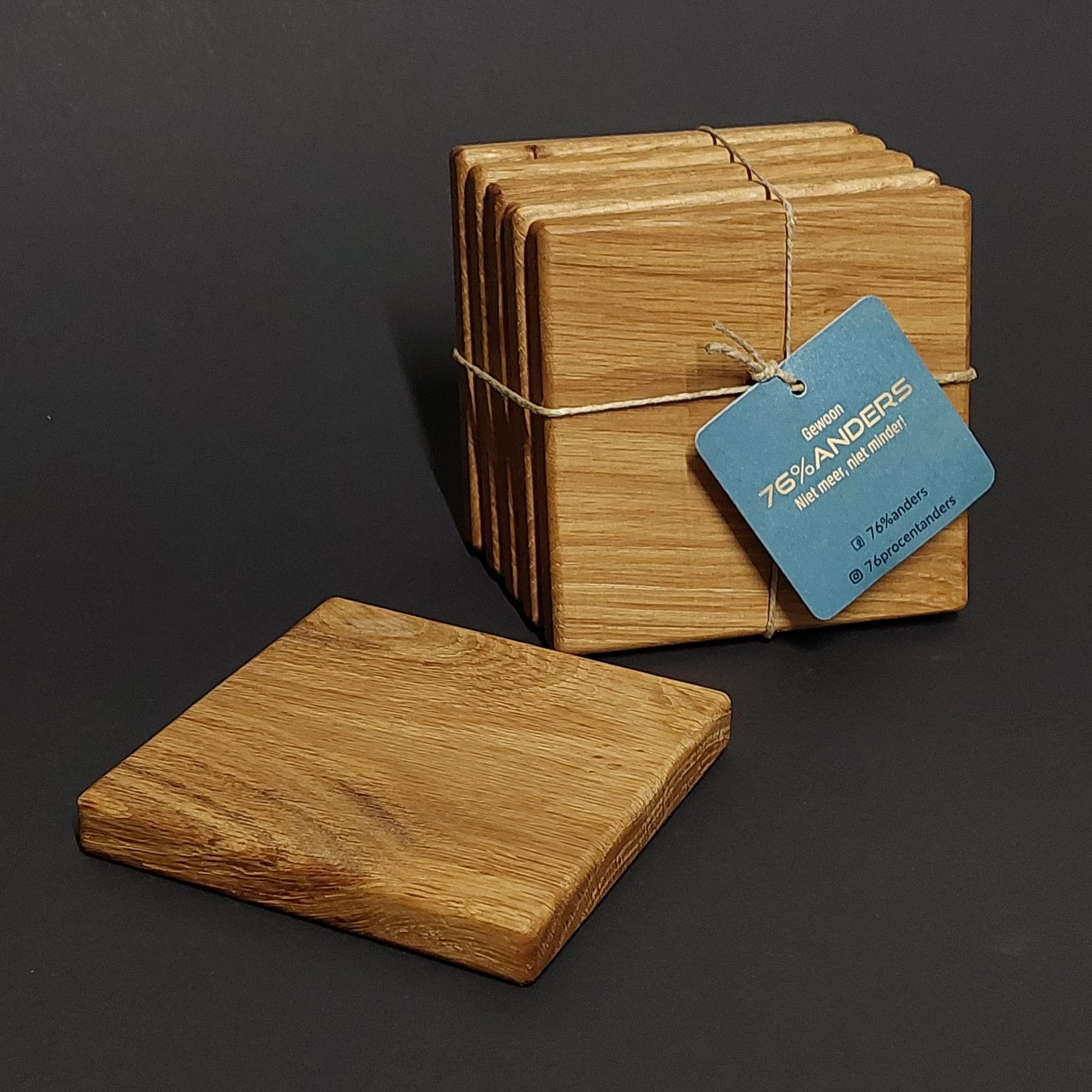 Add a touch of sustainability and rustic charm to your household with the "Eco Rustic" coasters. This unique set of five coasters has been carefully crafted from 100% recycled oak, giving each piece its own unique texture and appearance. Measuring 10 x 10 cm, these coasters provide plenty of space for your favorite drinks, while protecting your tables from stains and rings. The natural beauty of the recycled oak wood brings a warm, organic atmosphere to any room and is perfect for both everyday use and special occasions. Whether you pursue an environmentally conscious lifestyle or are simply looking for a stylish addition to your interior, the "Eco Rustic" coasters are the ideal choice.