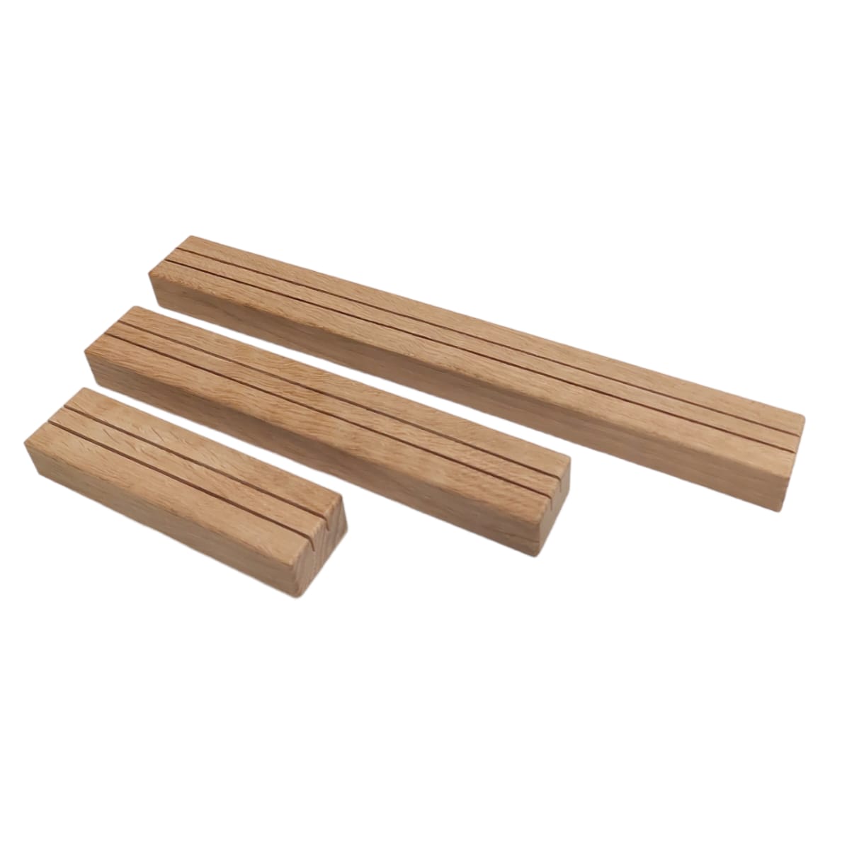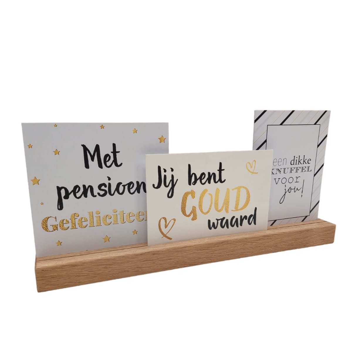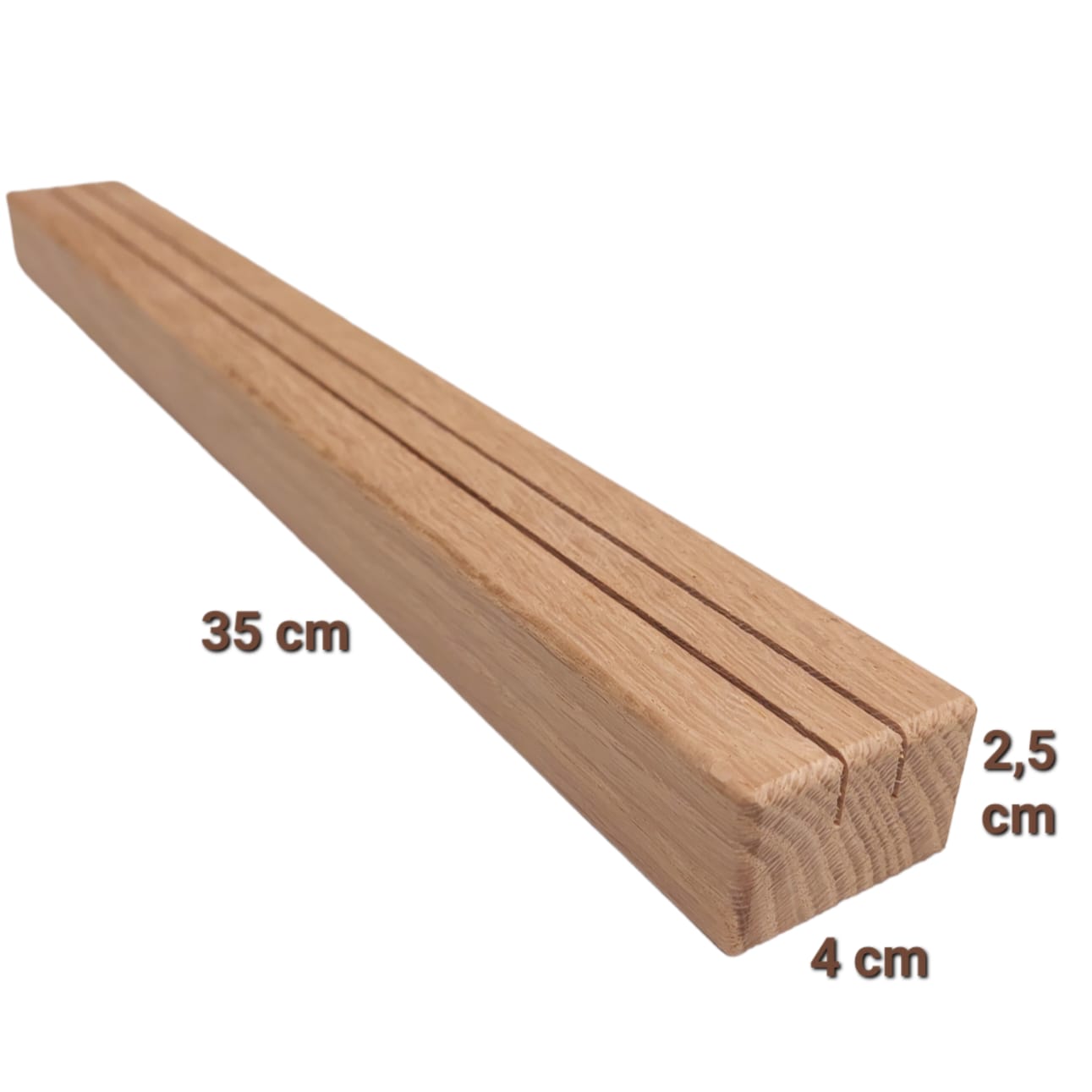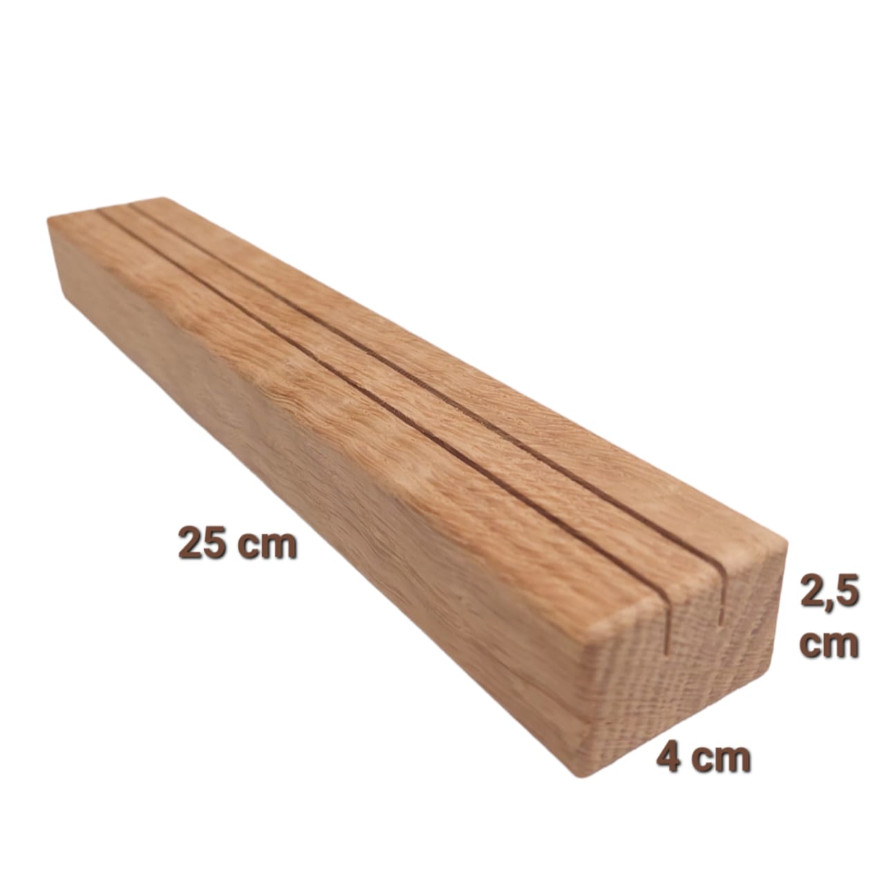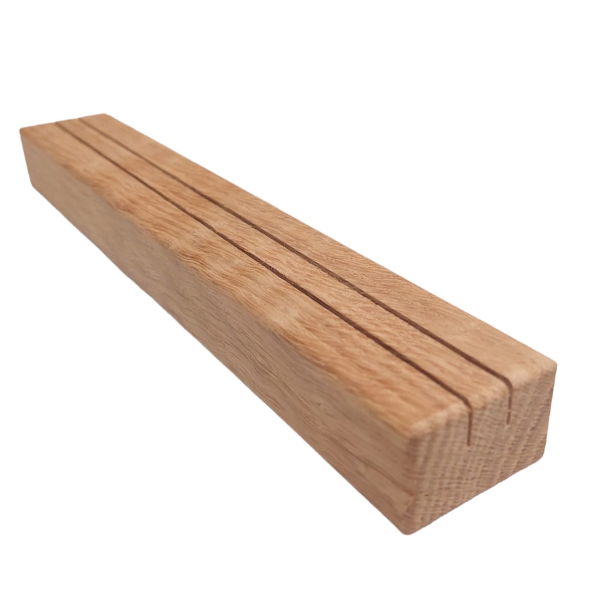 These sturdy wooden cubes with double slots are perfect for presenting cards and photos in an elegant way. They are made from 100% recycled oak wood, making them not only functional but also environmentally friendly. The blocks have a durable quality and ensure that cards remain firmly in place without shifting. They are ideal for displaying photos, postcards, business cards or even menus for tables in the catering industry. With their natural appearance they add a touch of warmth and authenticity to any room. Whether in an office, shop or home, these wooden cubes are a practical and stylish choice for presenting cards.